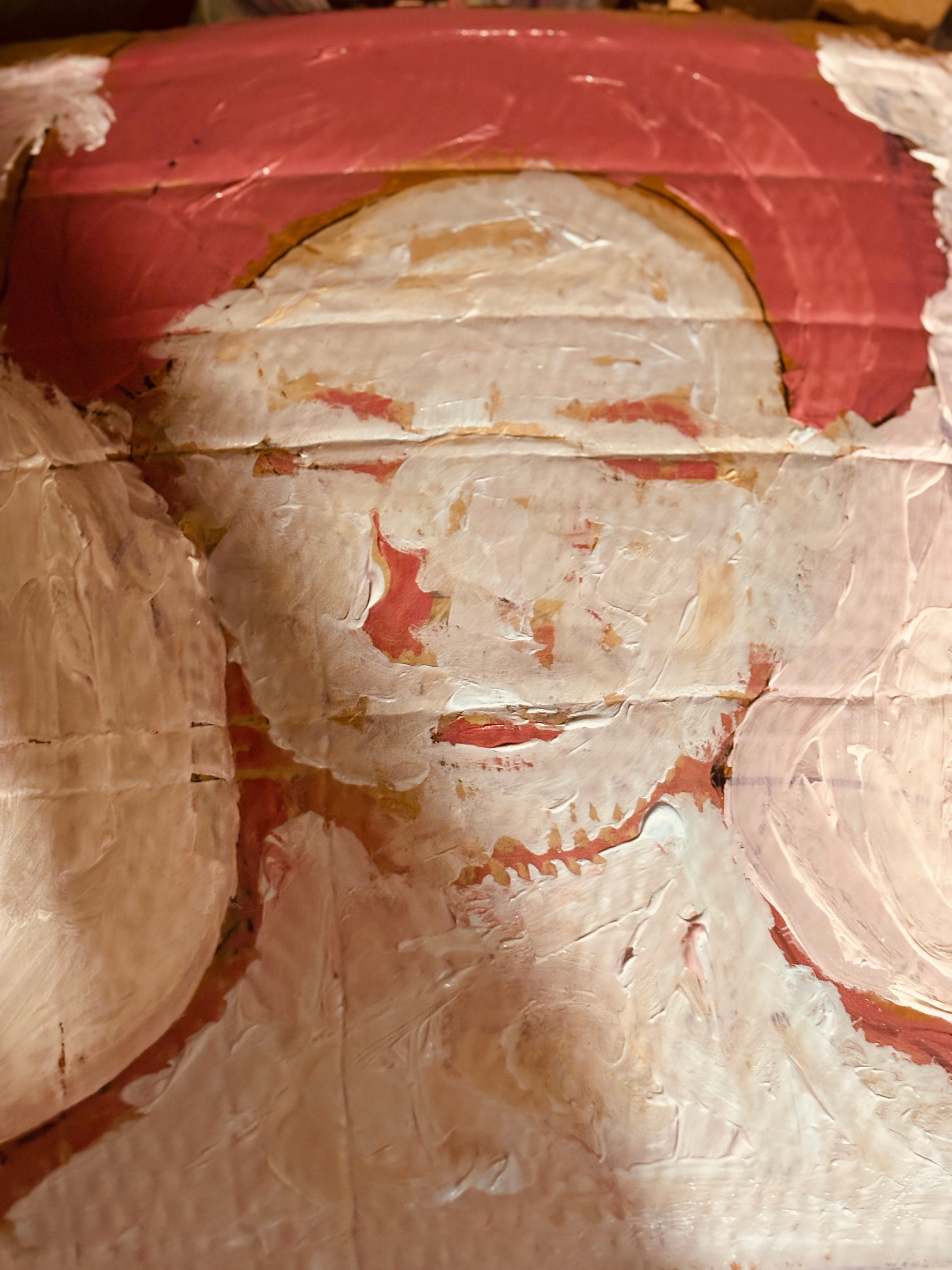 I was down in the garage again, with the buzz of flies around me. Iโm making portraits in acrylic paint using cardboard.